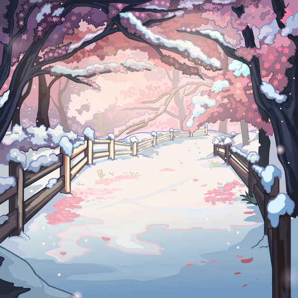 Snowy Path Along the Cherry Blossoms Background